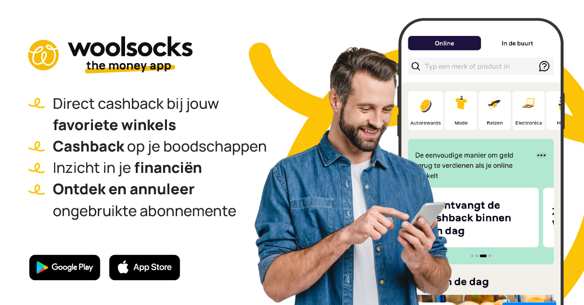 Je koppelt je bankrekening, en Woolsocks herkent automatisch waar je hebt gewinkeld. Je krijgt cashback op geselecteerde winkels en producten.
